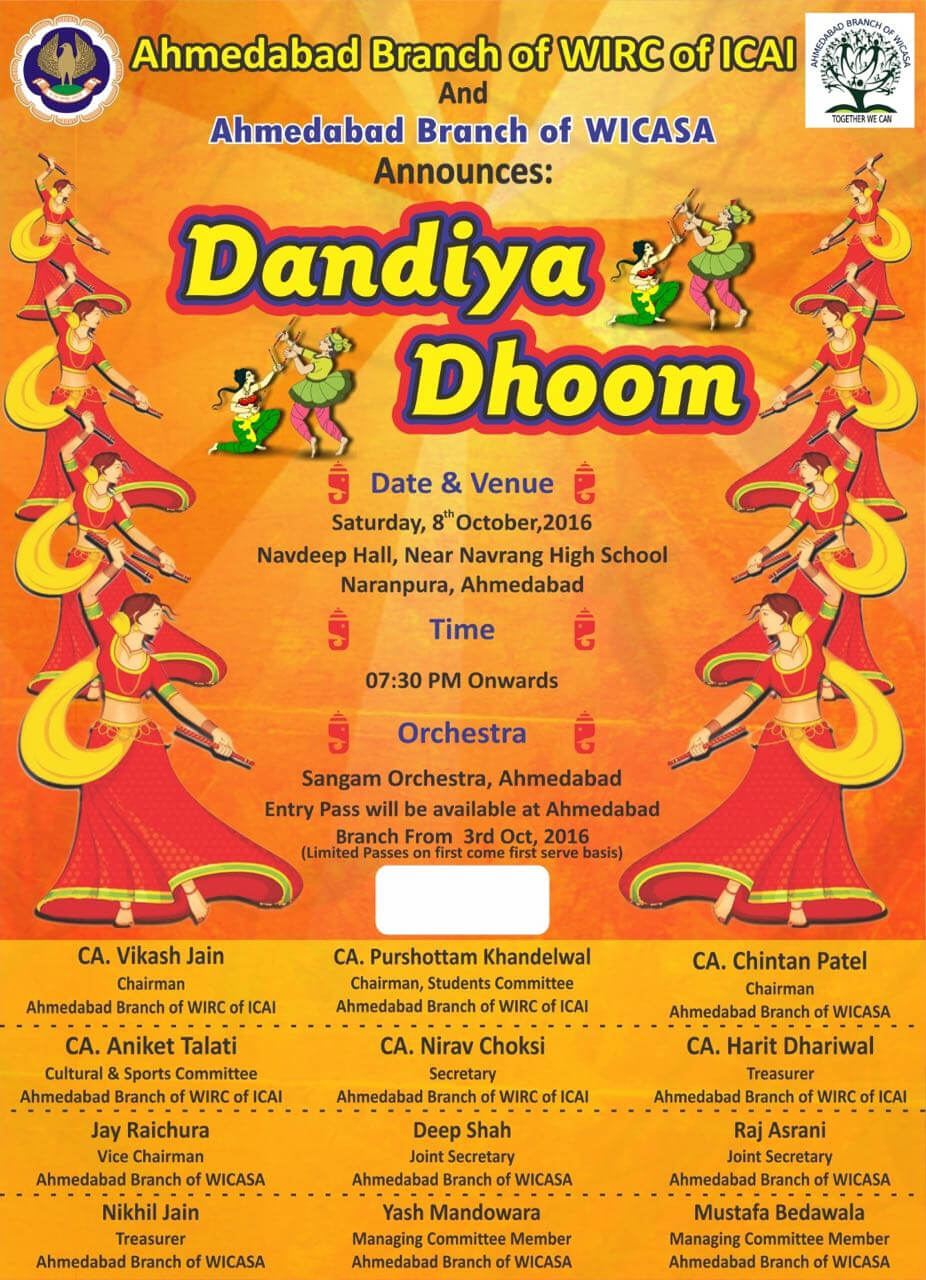 The Long and tiring Tax Audit Season will continue into the month of October but we believe our members and students look forward to unwind and enjoy during the Festival of Navratri.